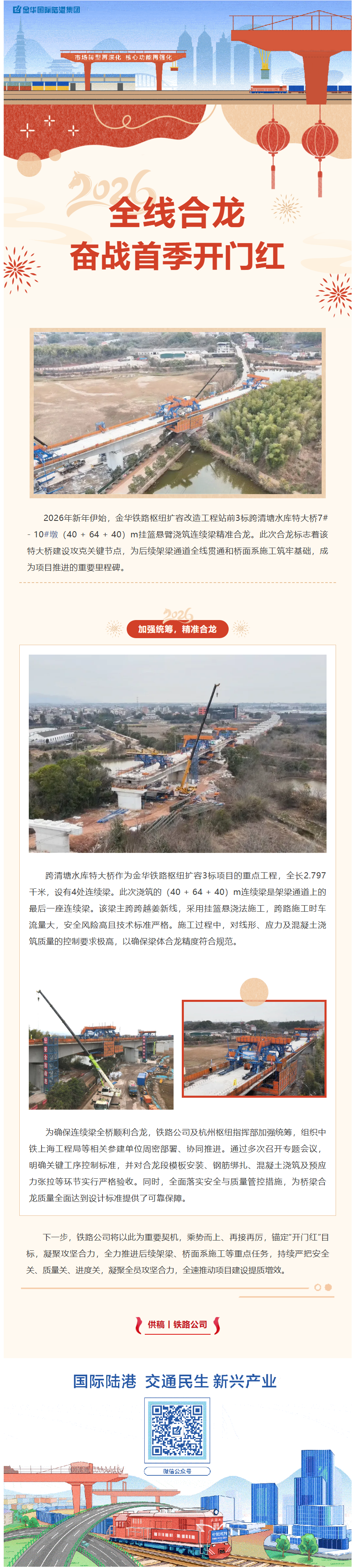 金華鐵路樞紐3標(biāo) 跨清塘水庫特大橋連續(xù)梁全線合龍