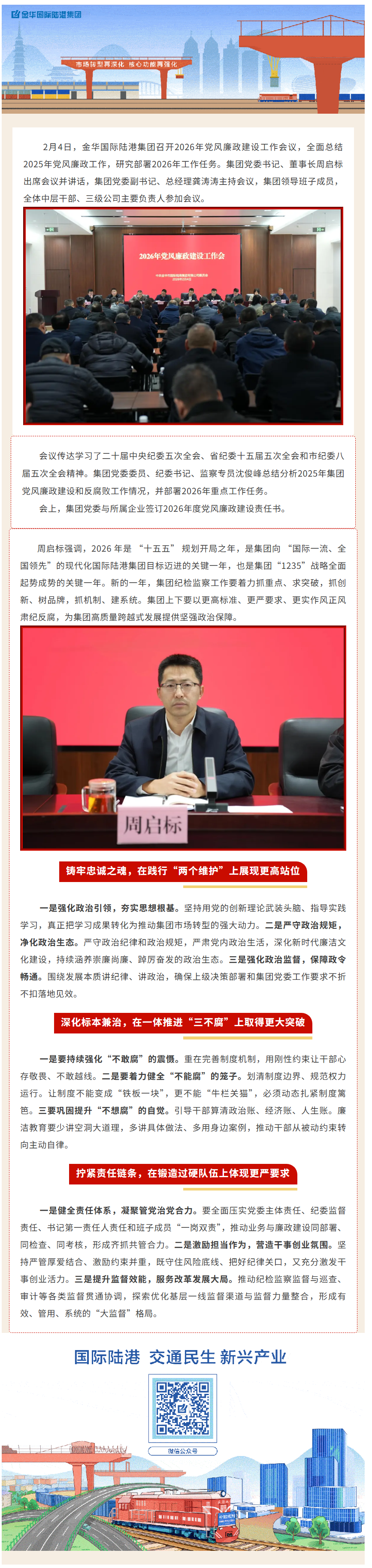 金華國(guó)際陸港集團(tuán)召開2026年黨風(fēng)廉政建設(shè)工作會(huì)議